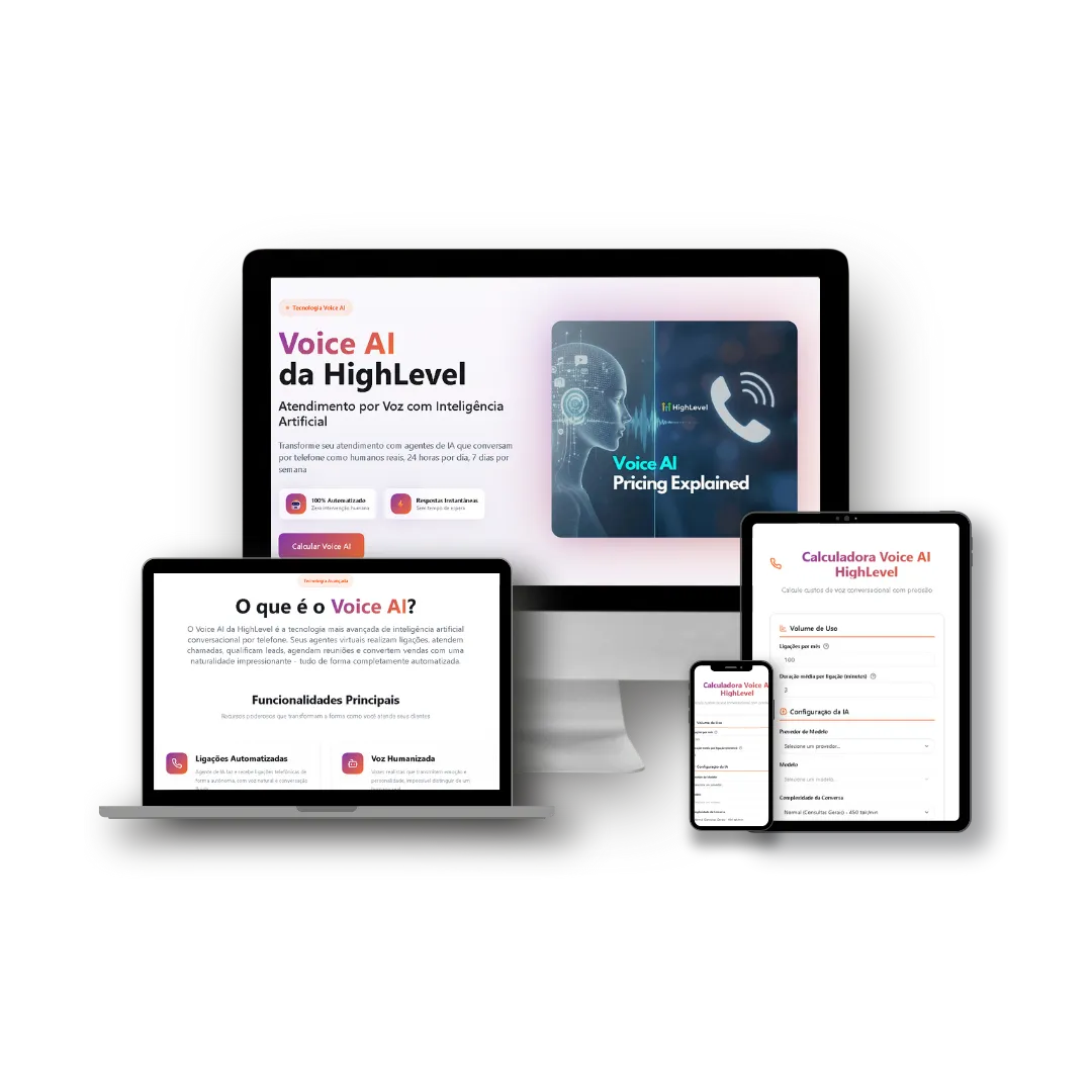 Simule minutos, chamadas, cenários de uso, volume mensal e descubra exatamente quanto você vai investir em Voice AI dentro do HighLevel